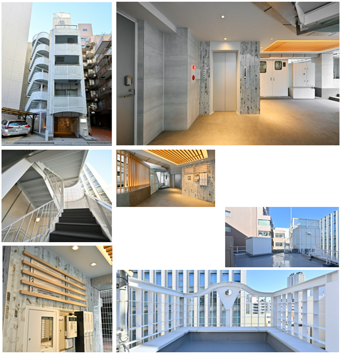 日本橋小網町PJ 施工年月日 2023年10月 所在地 東京都中央区日本橋小網町 種別 店舗・オフィスビル 構造 S造 地上7階建 築年数 1992年3月 延床面積 718.70㎡ 改修内容 ファサード/共用部 受注業務 デザイン・プロジェクトマネジメント before After
