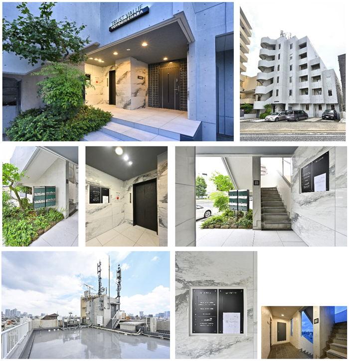 代々木上原PJ 施工年月日2023年7月所在地東京都渋谷区上原種別オフィスビル構造RC造6階建築年数1993年9月延床面積847.00㎡改修内容ファサード/共用部受注業務デザイン・プロジェクトマネジメント before After